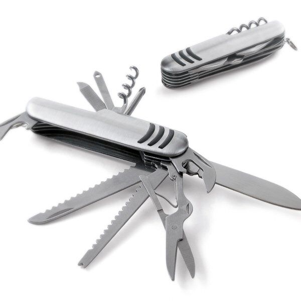 Multifunction pocket knife. Stainless steel and metal. With 11 functions.90 x 25 x 18 mm