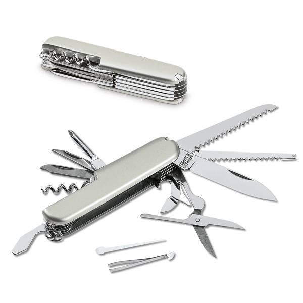 Multifunction pocket knife. Stainless steel and plastic. With 13 functions.90 x 20 x 17 mm