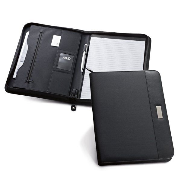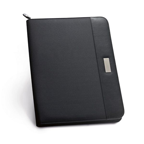 A4 folder. Imitation leather and microfiber. Notepad: 20 lined sheets. Ball pen not included.245 x 325 x 40 mm | Plate: 16 x 45 mm