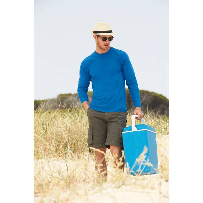 165 g/m2 (White: 160 g/m2). 100% cotton (Belcoro® yarn), Heather Grey: 97% cotton, 3% polyester. Neckband. Double seam at neck. Sleeves and hem. Tubular fabric.