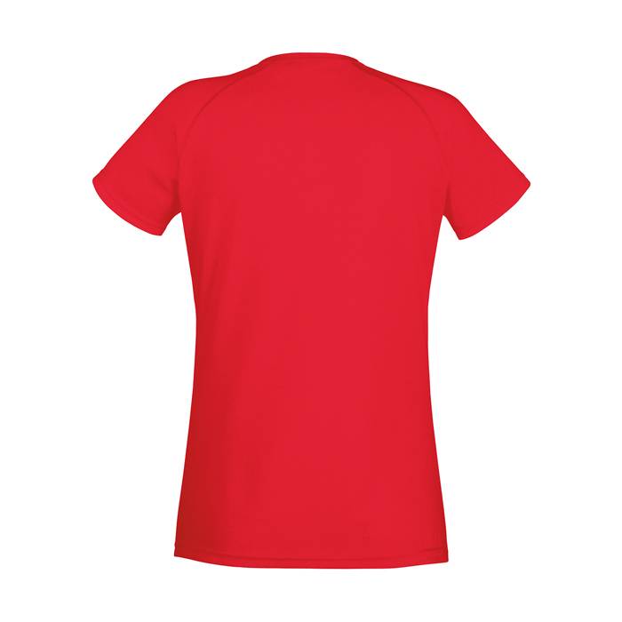 Ladies fit short sleeved T Shirt made from 140 g/m2. 100% Polyester. Sporty raglan sleeves with coverstitch detail. Shaped side seams for a feminine fit. Printed back neck label for comfort. Self fabric necktape.