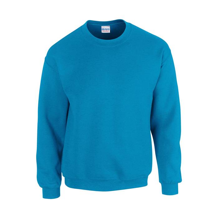 270 gr/m2 (White: 255 gr/m2). 50% cotton, 50% polyester. Open end yarn (air jet yarn). Crew neck. Set-in sleeves. Elastic rib trim to sleeve ends and bottom hem. Double-needle stitching. Tubular fabric.