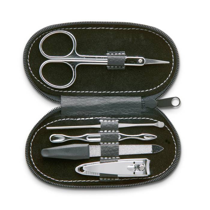 Manicure set in oval PU pouch. All 5 tools in stainless steel.