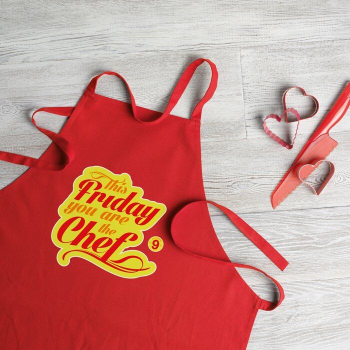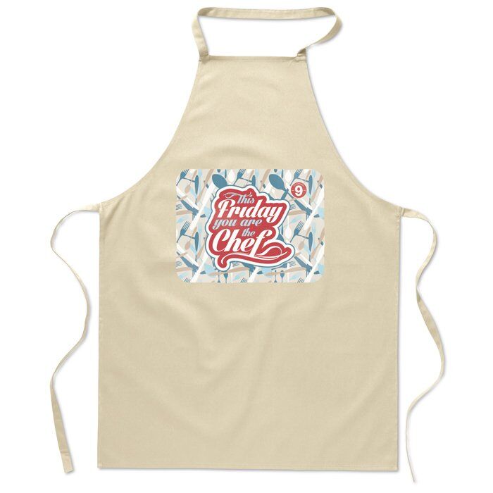 Kitchen apron in 180 gr/m2 cotton material. Convenient for your everyday cooking.