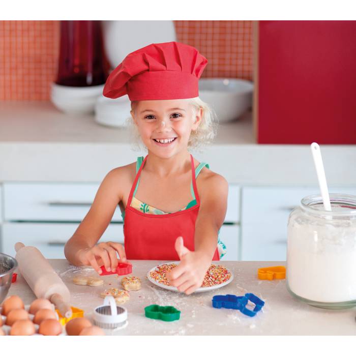Children’s kitchen set. Chef hat and apron in 180 gr/m2 cotton material.