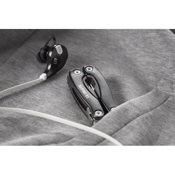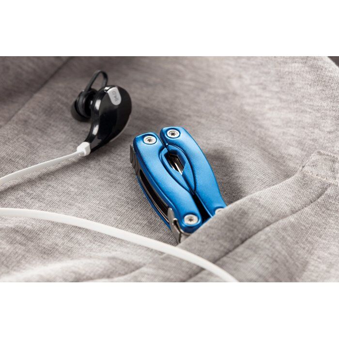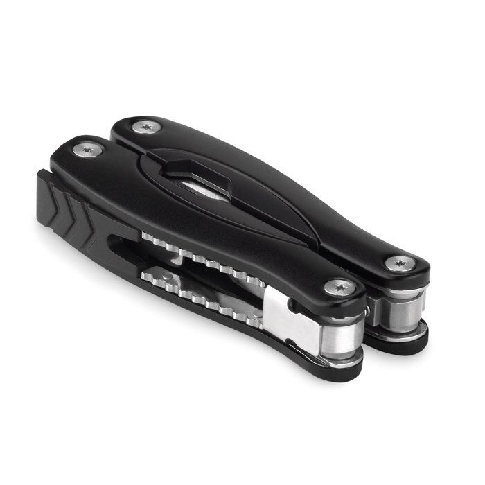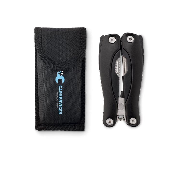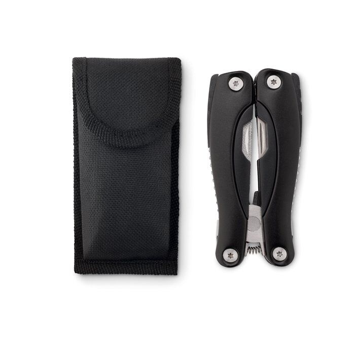 Foldable multi-tool knife in stainless steel. Includes 9 tool functions in ABS including 600D polyester pouch.