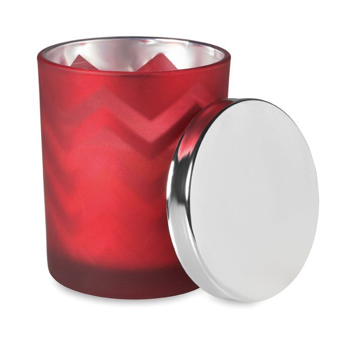 Scented candle in glass with lid.