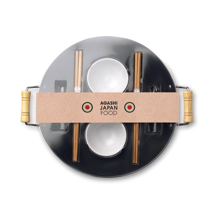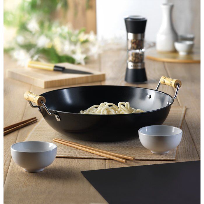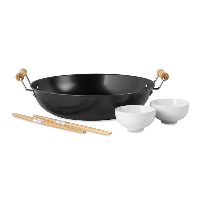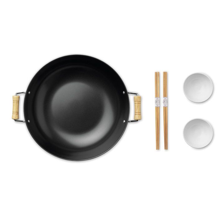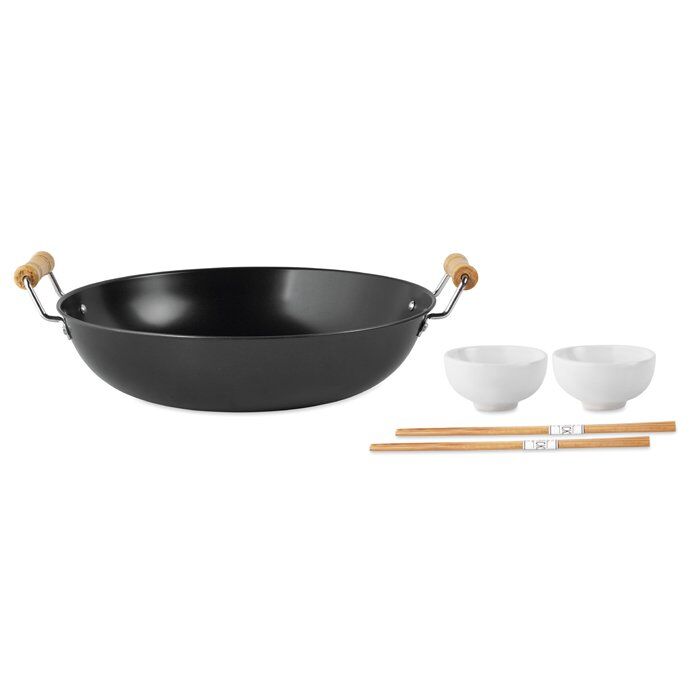 Carbon Steel wok with 2 bowls and 2 pairs of chopsticks. M139:M147 Induction compatible.