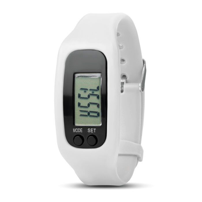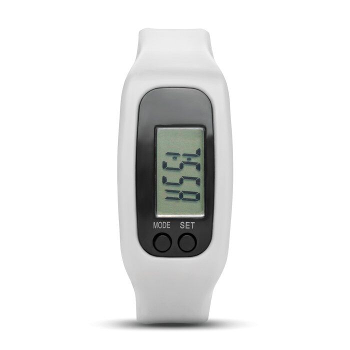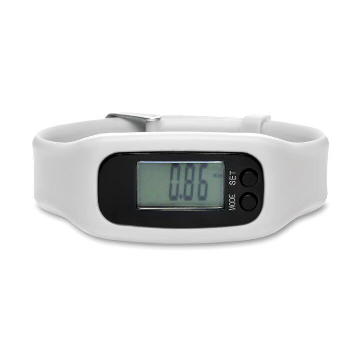 Pedometer bracelet. Includes step, distance, time and calorie counter. 1 AG10 cell battery included.