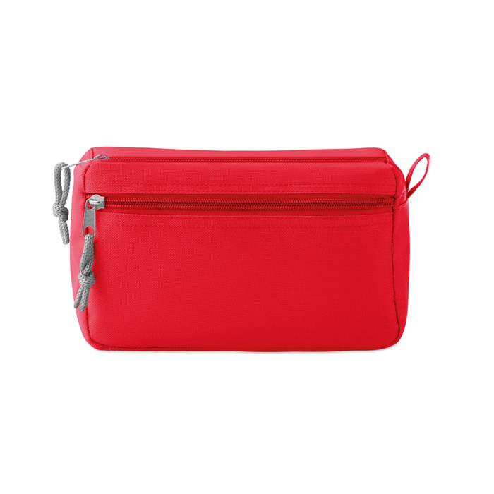 Cosmetic bag with double zipper. 600D polyester with PPE backing.