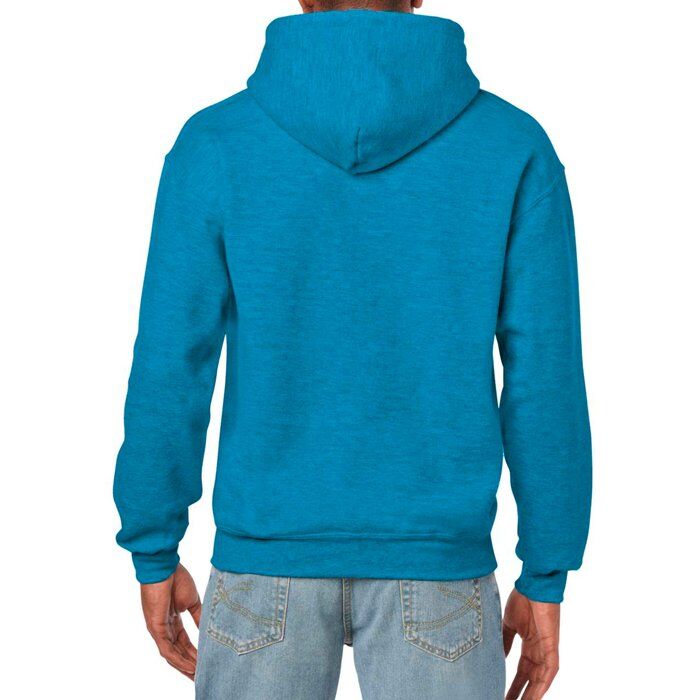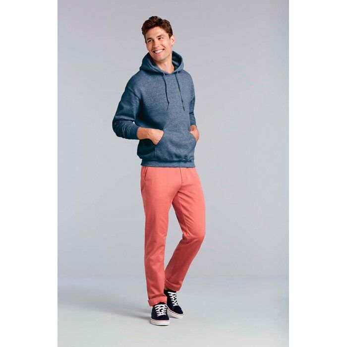 270 g/m2 (White: 255 g/m2). 50% cotton, 50% polyester. Open end yarn. Double draw cord hood. Set-in sleeves. Patch kangaroo pocket. Elastic rib trim to sleeve ends and bottom hem. Tubular fabric.