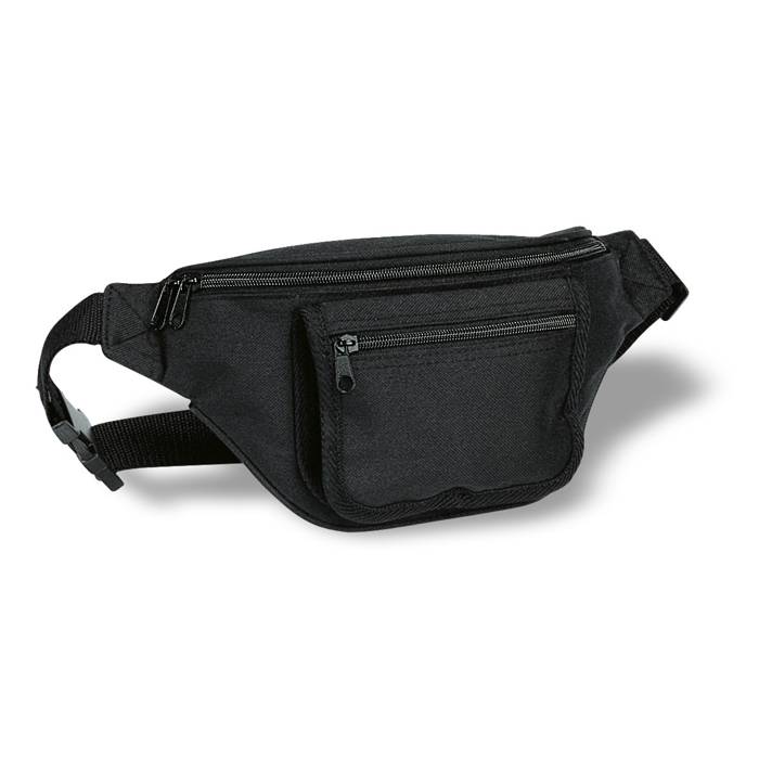 Waist bag with pocket for credit cards and pen. 600D polyester.