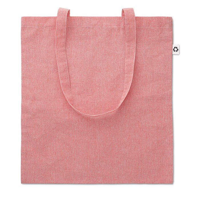 2 tone 100% recycled cotton shopping bag with long handles. 140 gr/m².