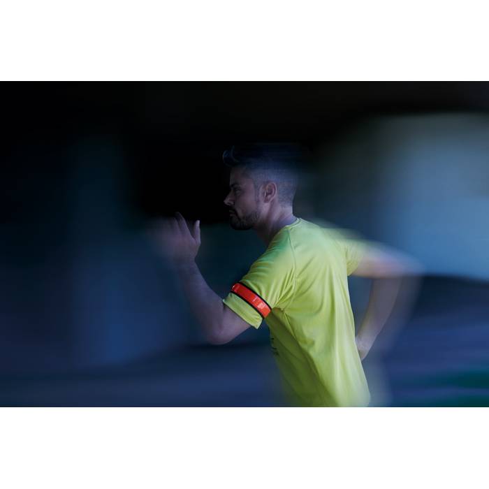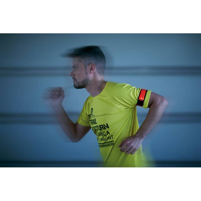 PVC reflective armstrap with LED ligth, 2 options: blinking and flashing light. Non woven on back side. 1 CR2032 battery included.
