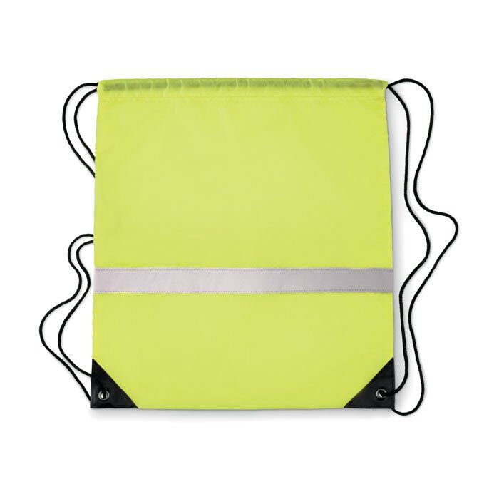 Drawstring bag in 190T polyester with reflective stripe.