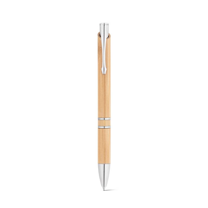 Bamboo ball pen with clip and metal details. Blue ink. ø11 x 141 mm