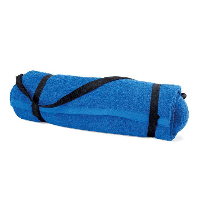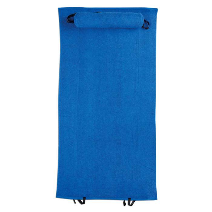 Foldable beach towel with pillow to improve comfort whilst sunbathing. 350g/m2 cotton.