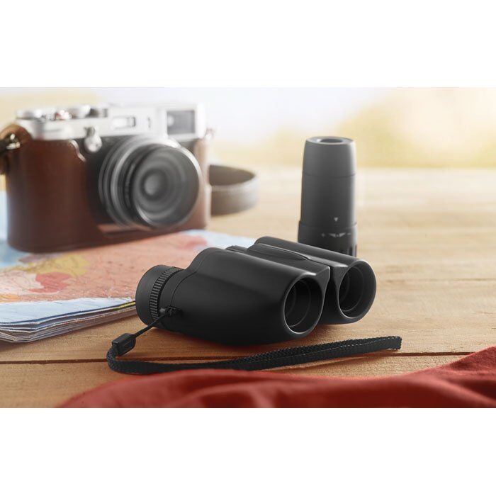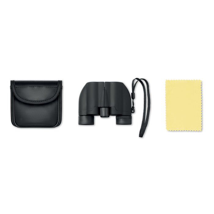 8×21 binoculars in ABS and rubberized finish. Including pouch and cleaning cloth.