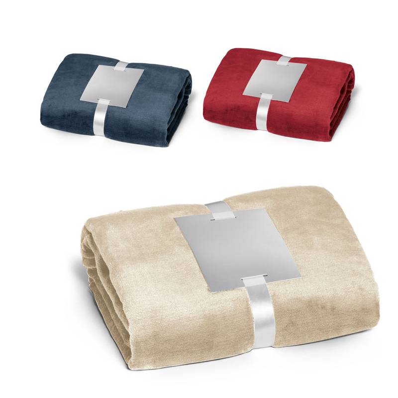 Polar fabric blanket (240 g/m²), with velvety finish and anti-pilling treatment. The blanket has a satin ribbon and card for customisation. 1500 x 1200 mm | Cardboard: 160 x 130 mm