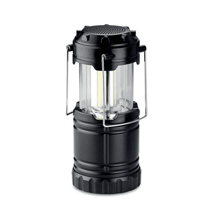 200 lumen COB lantern light with 5.0 Bluetooth speaker. 3 magnets on the bottom of the item. Output data: 3W, 4 Ohm. 1 Rechargeable Lithium 400 mAh battery and USB charging cable included. Playing time. 3h.