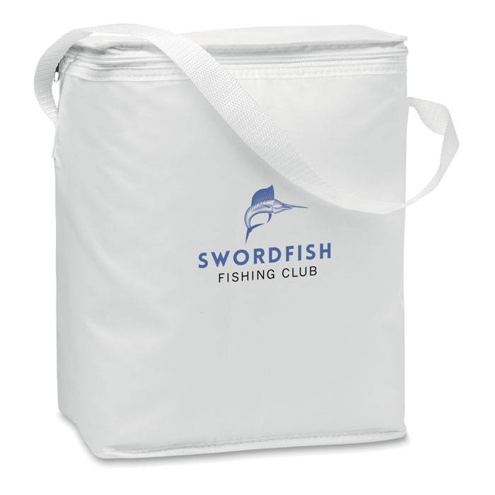 Aluminium foil cooler bag for 6 1,5l bottles in 210 polyester. With non woven white trimmings. 80gr/m².
