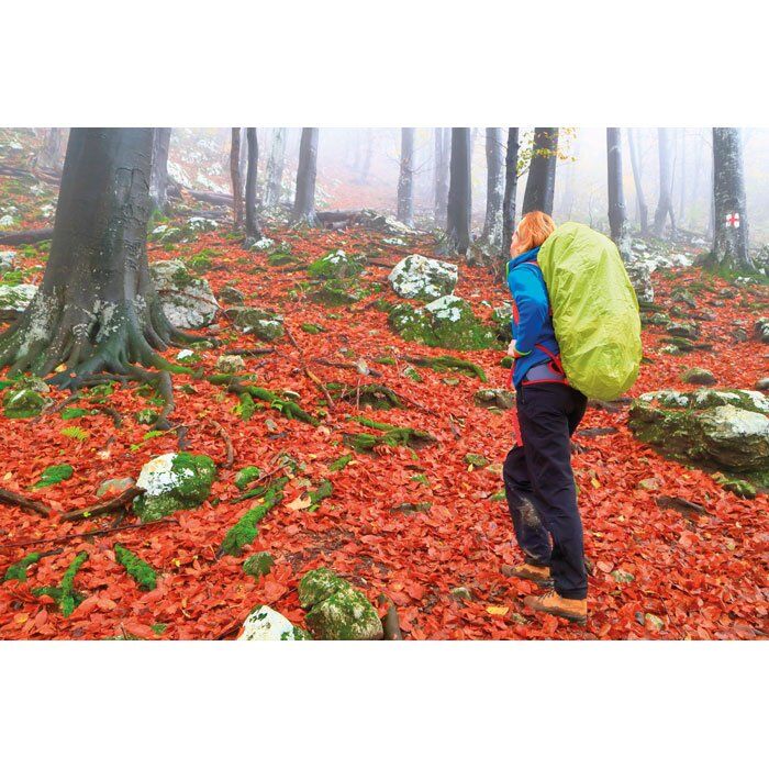 Foldable cover for protecting your backpack and waterproof with antireflection straps. Made of 210D polyester