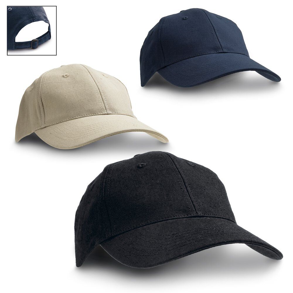 100% cotton canvas hat with 6 panels and adjustable metal buckle. Size: 580 mm