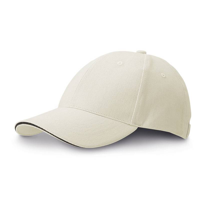 100% brushed cotton sandwich cap with 6 panels and adjustable metal buckle. Size: 580 mm