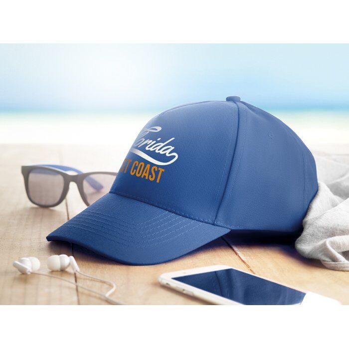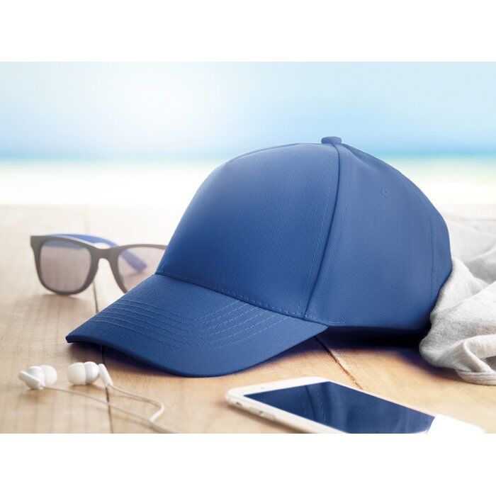5 panel baseball cap in polyester twill with velcro closure. Size 7 1/4.