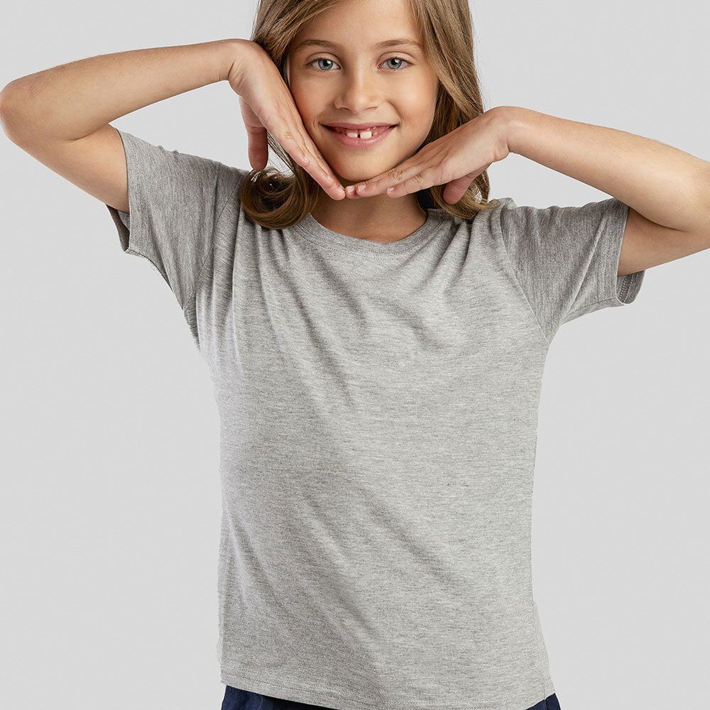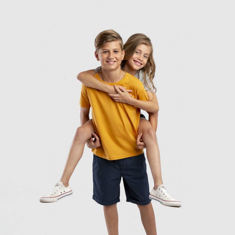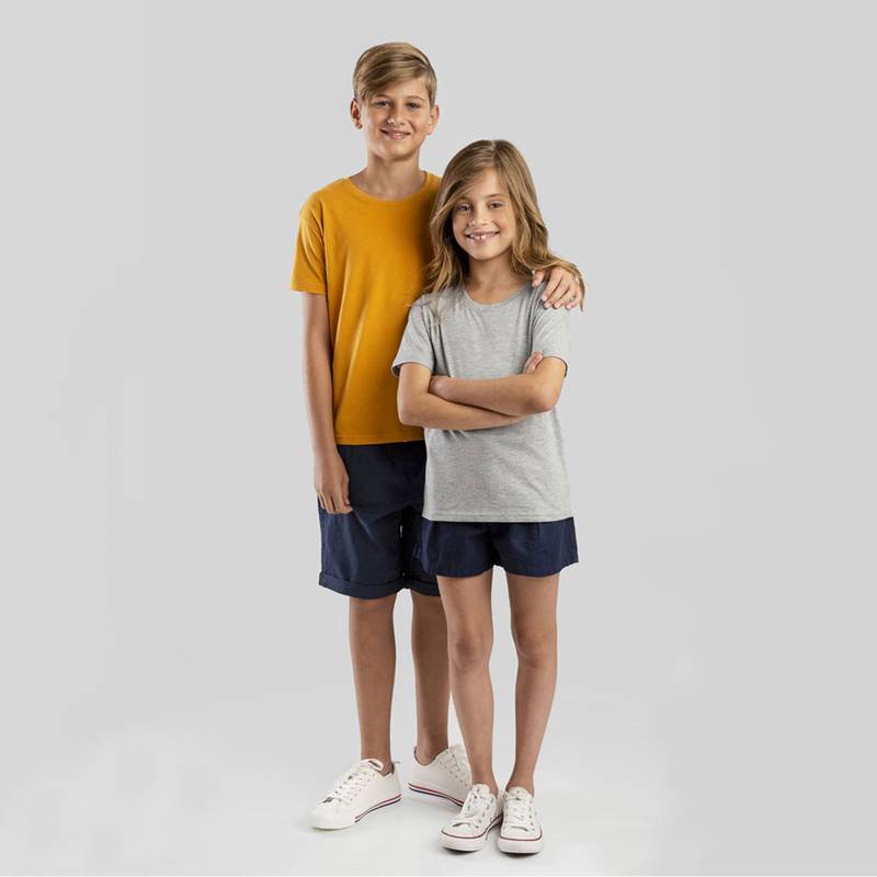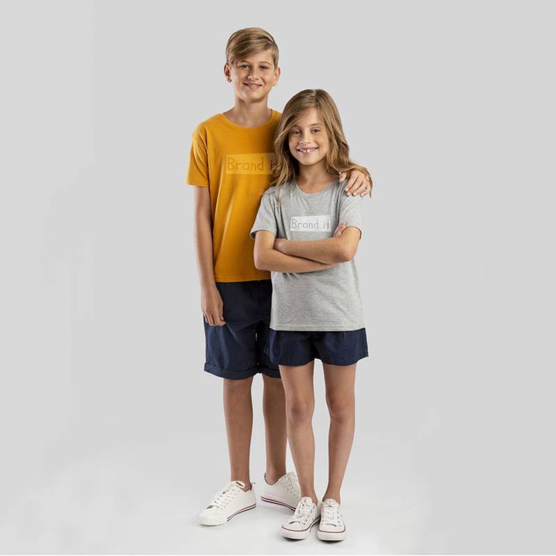 100% cotton jersey unisex kid’s t-shirt (150 g/m²). 1×1 rib collar and jersey ribbing. Double stitching on sleeves and bottom. Cut and sewn. Sizes: 2, 4, 6, 8, 10, 12