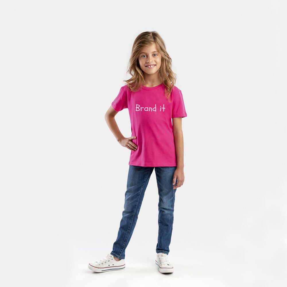 100% cotton jersey unisex kid’s t-shirt (190 g/m²). 1×1 rib collar and jersey ribbing. Double stitching on sleeves and bottom. Cut and sewn. Sizes: 2, 4, 6, 8, 10, 12