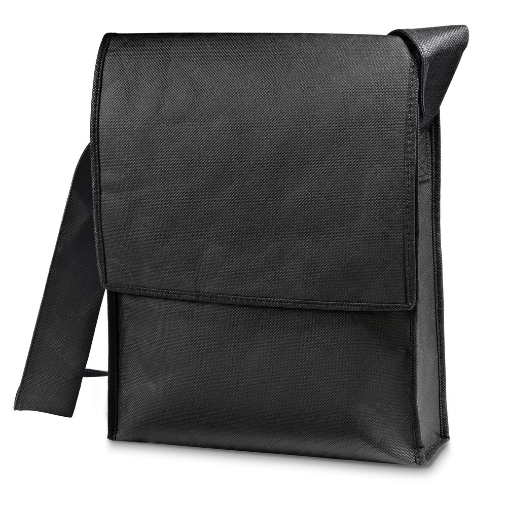 Non-woven shoulder bag (100 g/m²). This bag has velcro closure and 135 cm handle. 260 x 330 x 60 mm