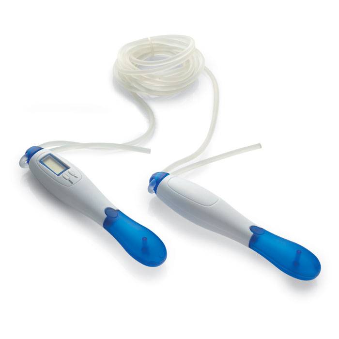 Digital jumping rope. Indicates number of jumps and calories burned. 1 cell battery included