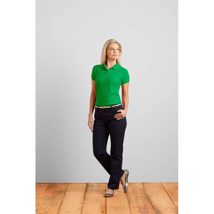 207 g/m2 (White: 200 g/m2). 65% polyester, 35% cotton, ring spun (double piqué). Preshrunk. DryBlend® technology: moisture-wicking properties. Clean finished placket with reinforced bottom box and 2 color-matched buttons. Contoured welt collar and cuffs. Heat transfer label. Twin needle bottom hem. Sideseamed with side vents. Semi-fitted.