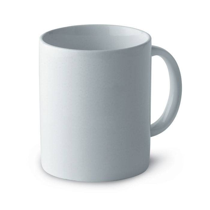 Classic cylindrical 300ml mug in individual corrugated carton gift box. For full colour process printing, please contact us for pricing. Pad printing is not dishwasher safe. Ceramic transfer is dishwasher safe.