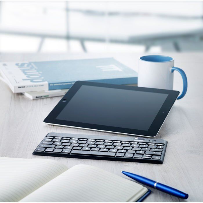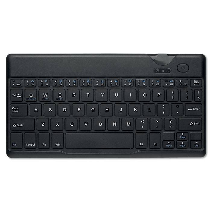 QWERTY Bluetooth 3.0 keyboard made of ABS. Including a USB cable with micro usb plug. Compatible with Android, iOS and Windows.