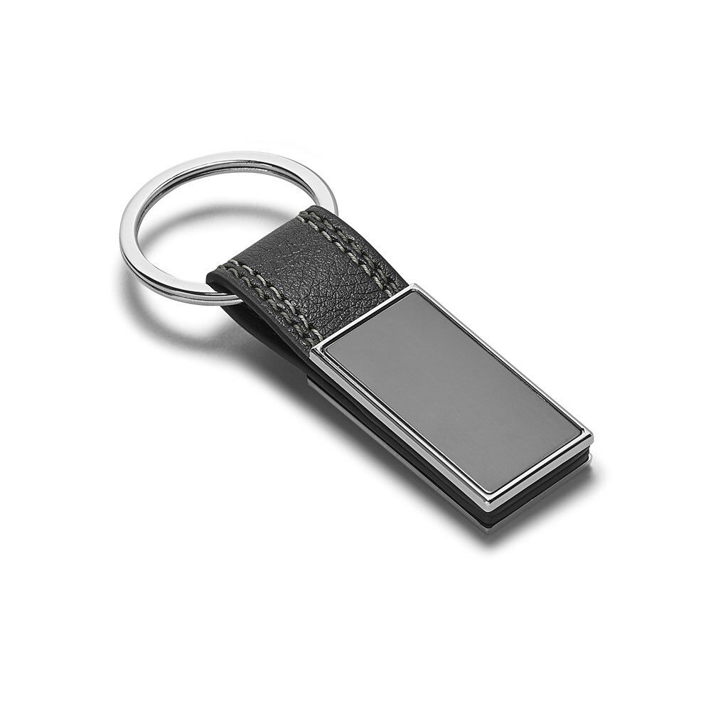 Keyring in imitation leather and metal. This customisable keyring is supplied in a gift box. 22 x 65 x 8 mm