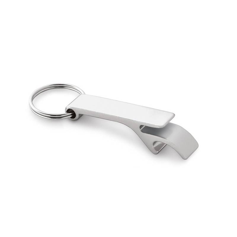 Aluminum keyring with bottle opener. 11 x 60 x 15 mm