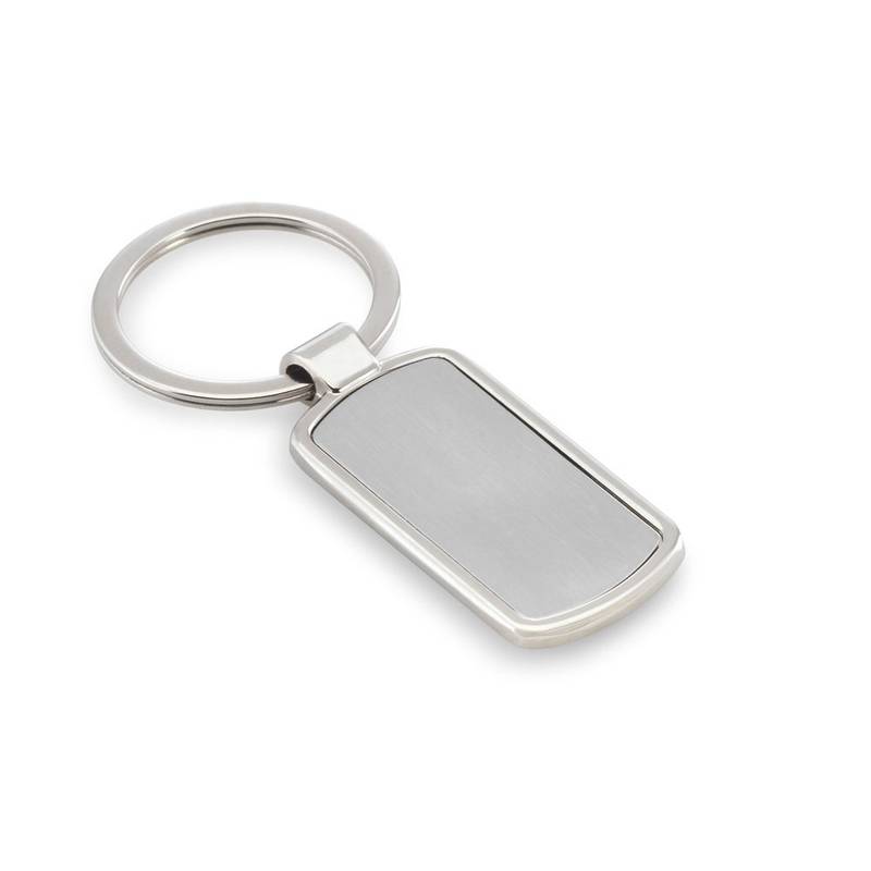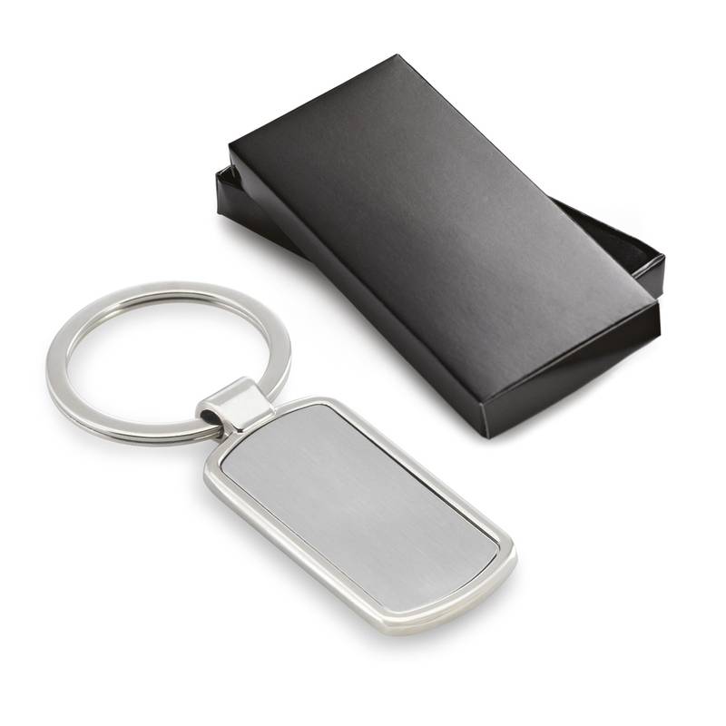 Metal keyring with slot for doming. This customisable keyring is supplied in a gift box. 24 x 53 x 4 mm