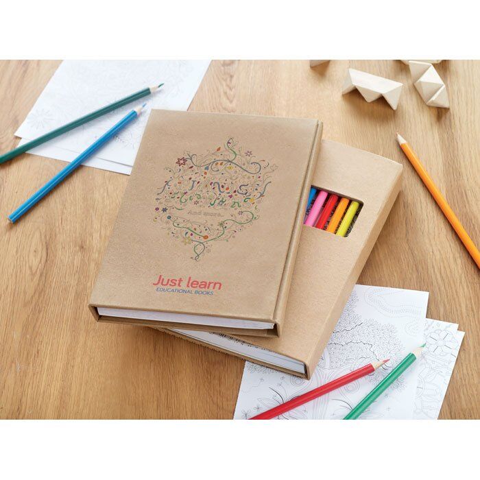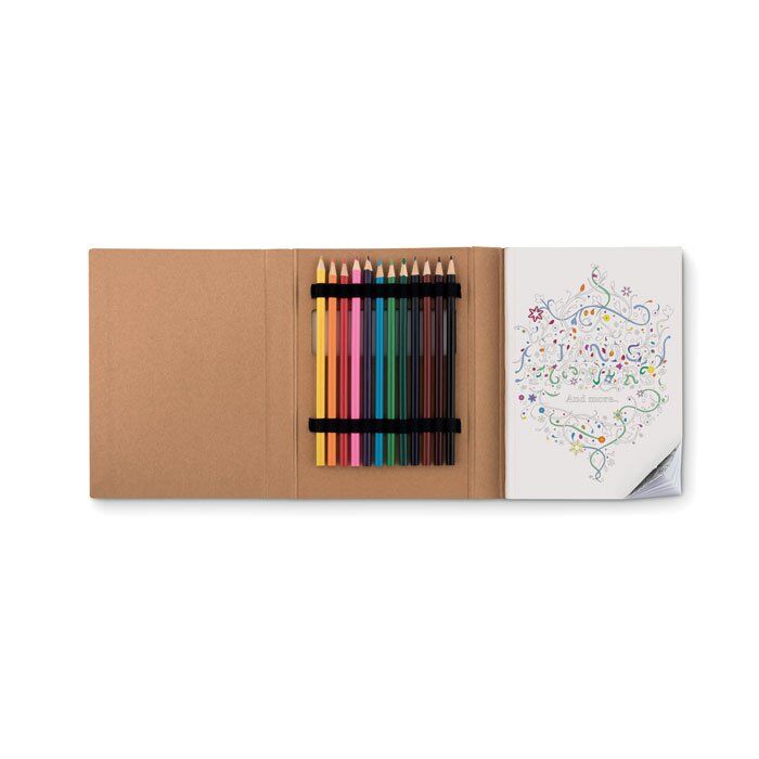 Adult drawing book with 12 coloured pencils and 50 sheets.