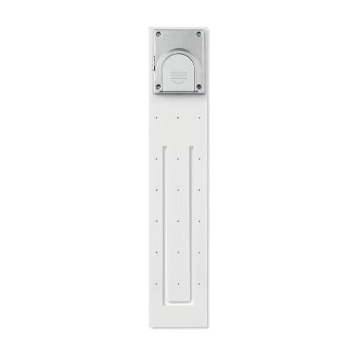 LED reading light bookmark. With a flexible body for easy beam angle adjustment. 2 CR2032 batteries included.