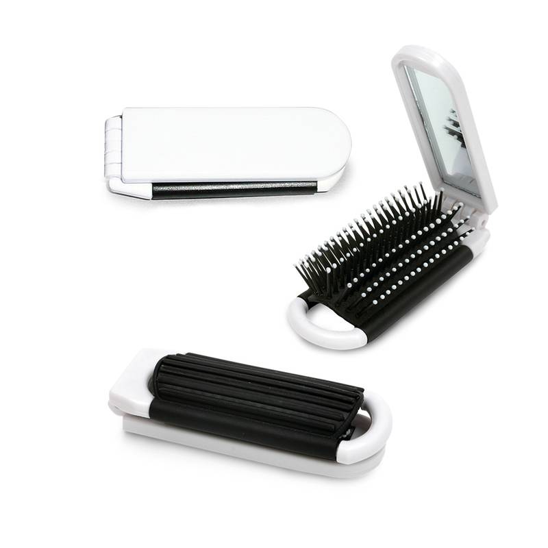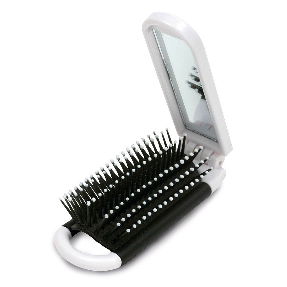 Make-up mirror with foldable brush. 105 x 35 x 25 mm