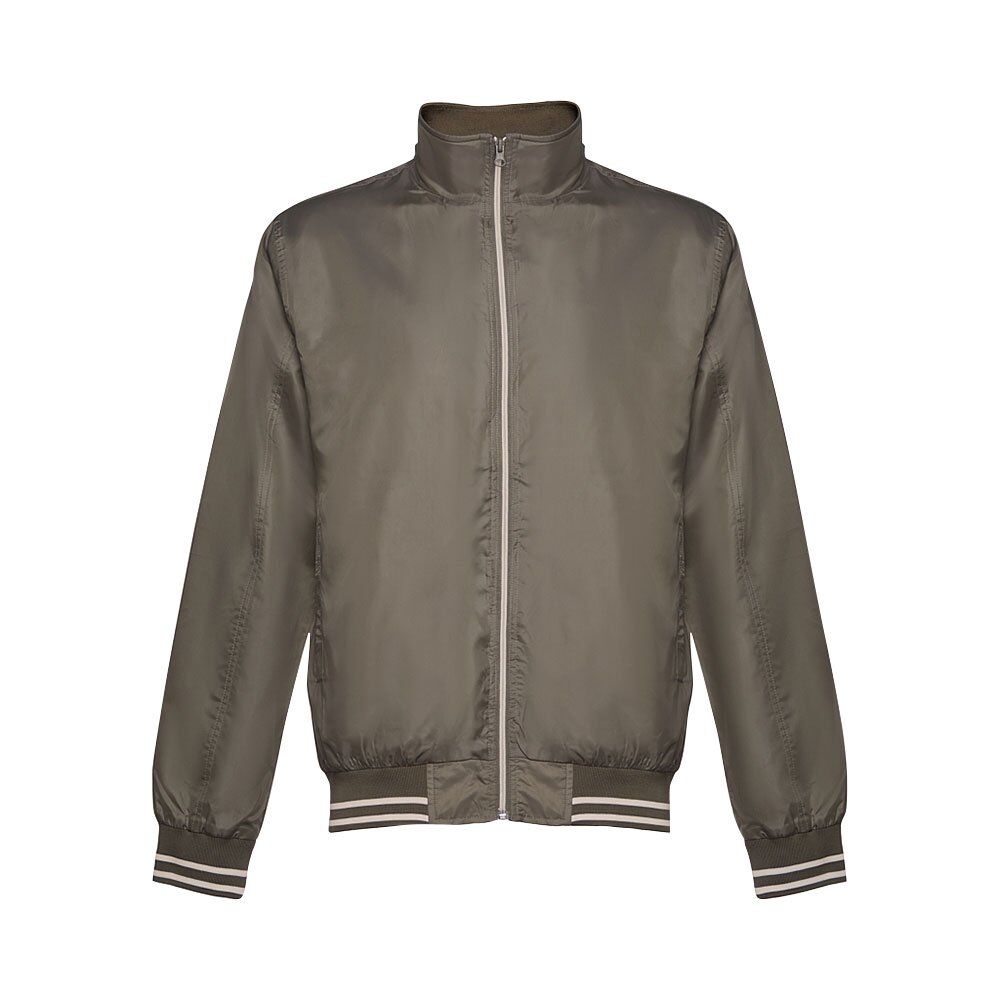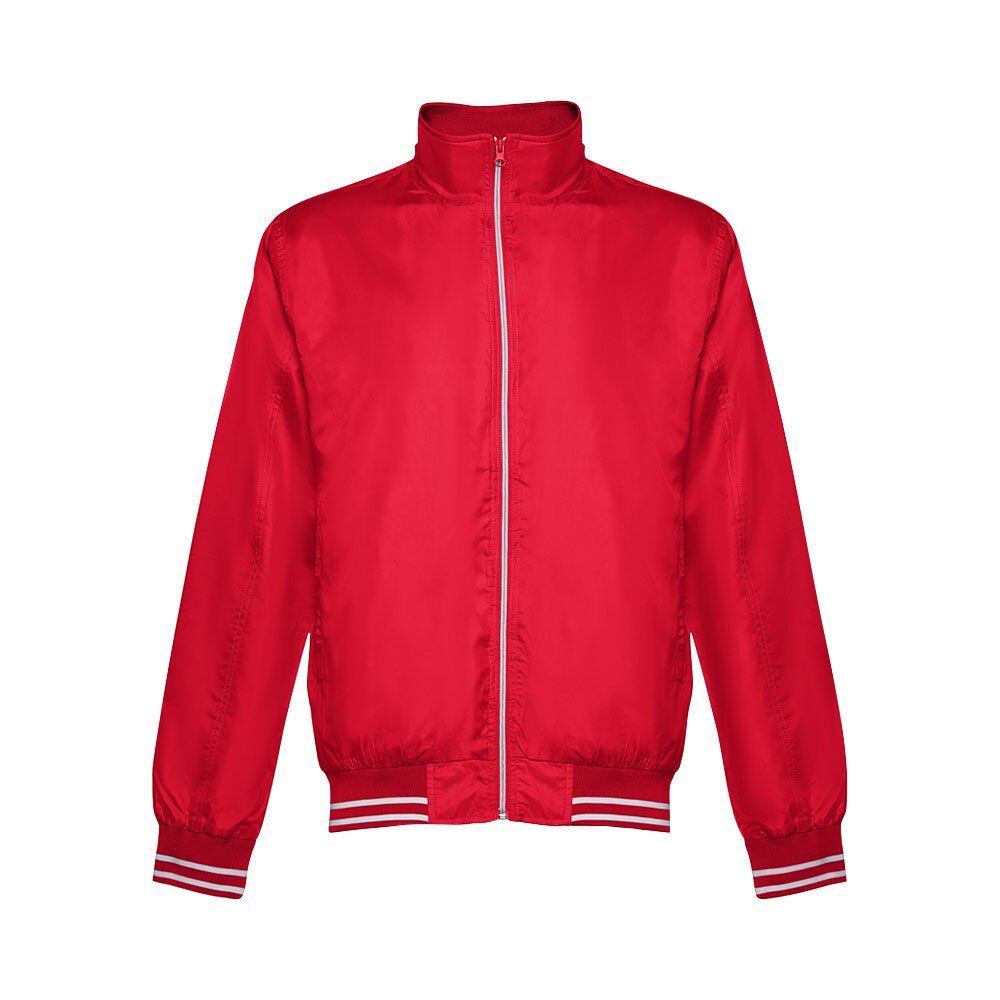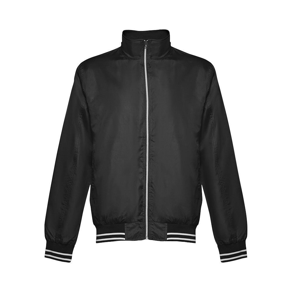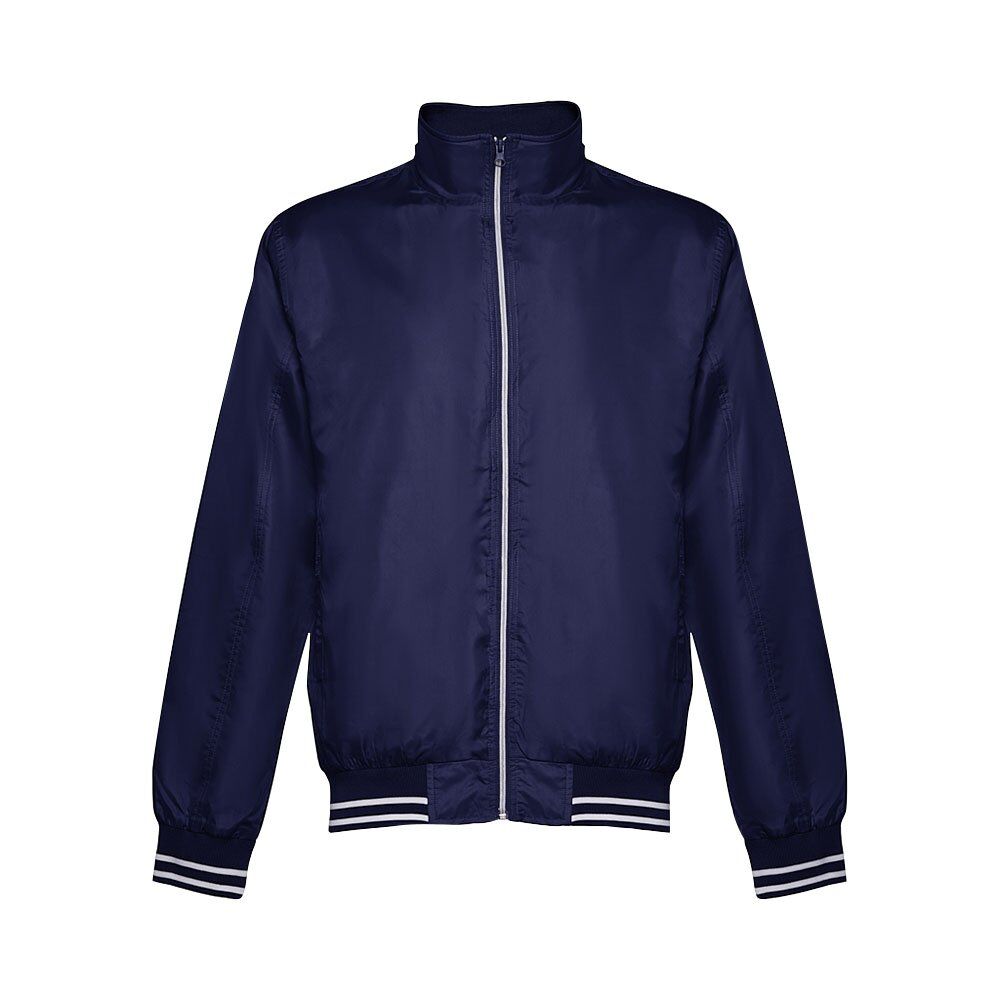 Men’s sports jacket in 100% polyester (160 g/m²). 2 front pockets. Cuffs and waistband in bicolour material. 1 back pocket for easy customisation. Sizes: S, M, L, XL, XXL