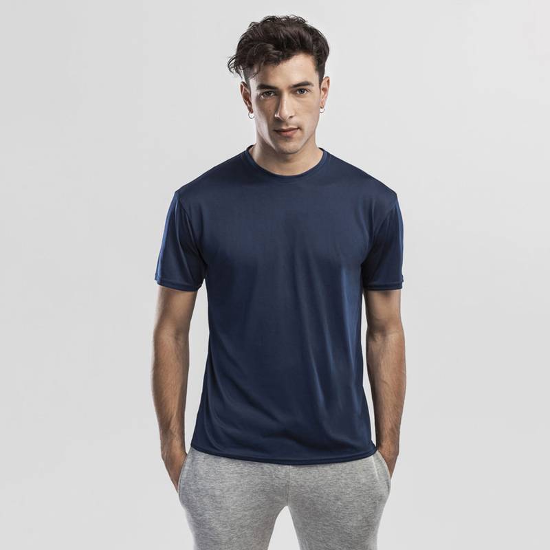 Men’s technical t-shirt, 100% polyester jersey (125 g/m²). Short sleeve. Reinforcement tape on the collar. Double stitching on sleeves and bottom. Sizes: S, M, L, XL, XXL