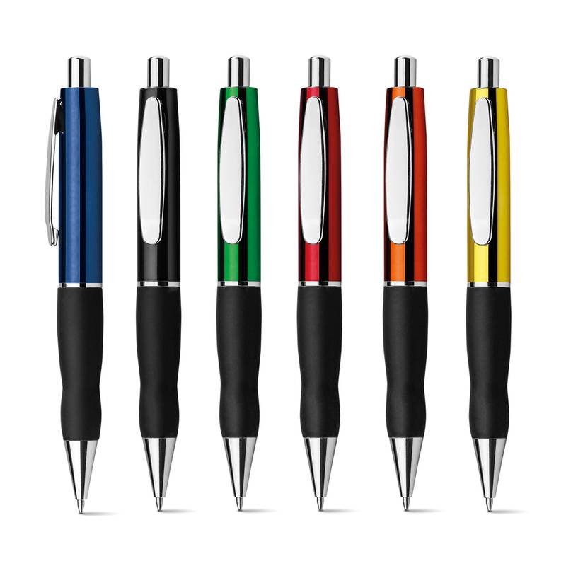 Non-slip UV metallized ball pen with metal clip. ø14 x 137 mm