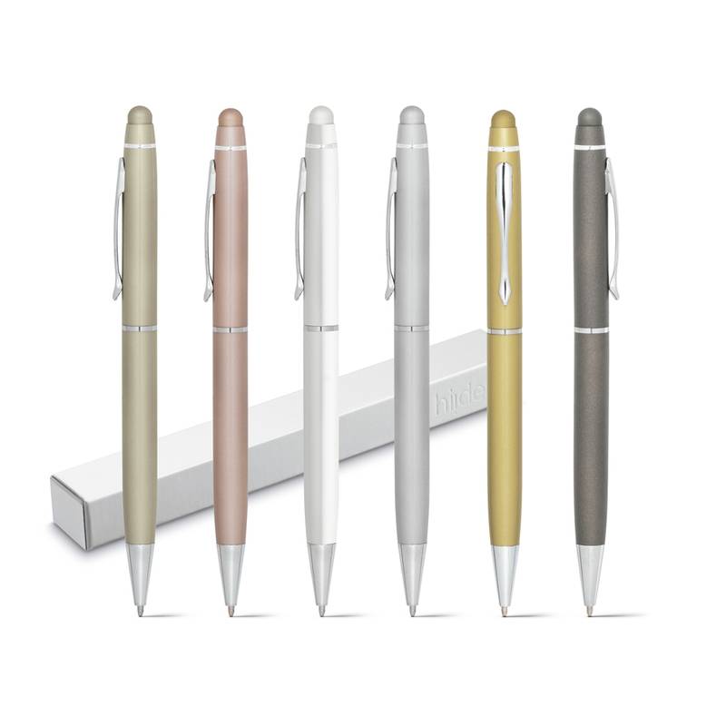Metal ball pen with touch tip. Supplied in a gift box (disassembled). ø10 x 141 mm | Case: 150 x 15 x 19 mm