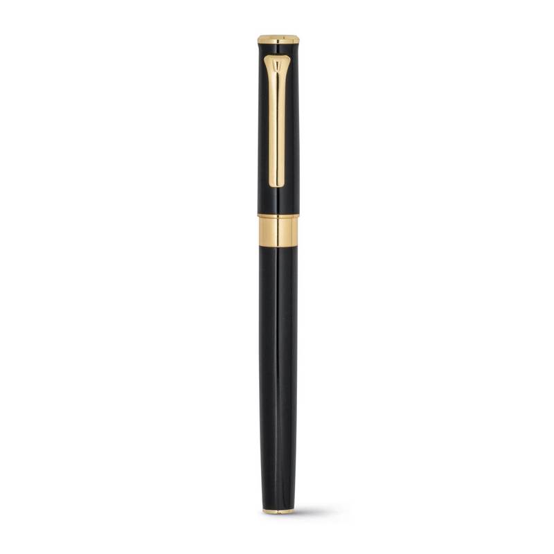 Stylish metal roller and ball pen set. Its 18-carat gold-plated elements make this set exquisite. Supplied in a padded gift case. ø12 x 136 mm | Case: 185 x 75 x 31 mm