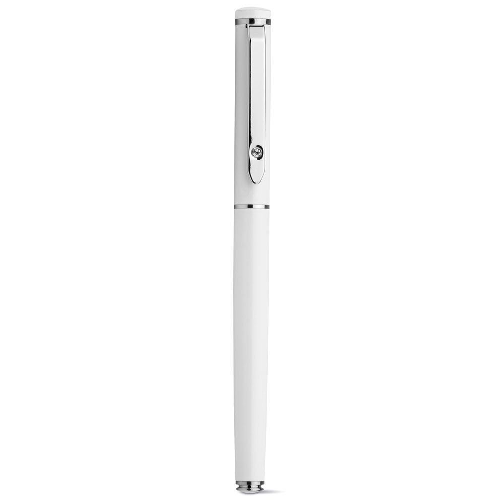Metal roller pen with blue refill in paper gift box. Box: 182 x 22 x 42 mm