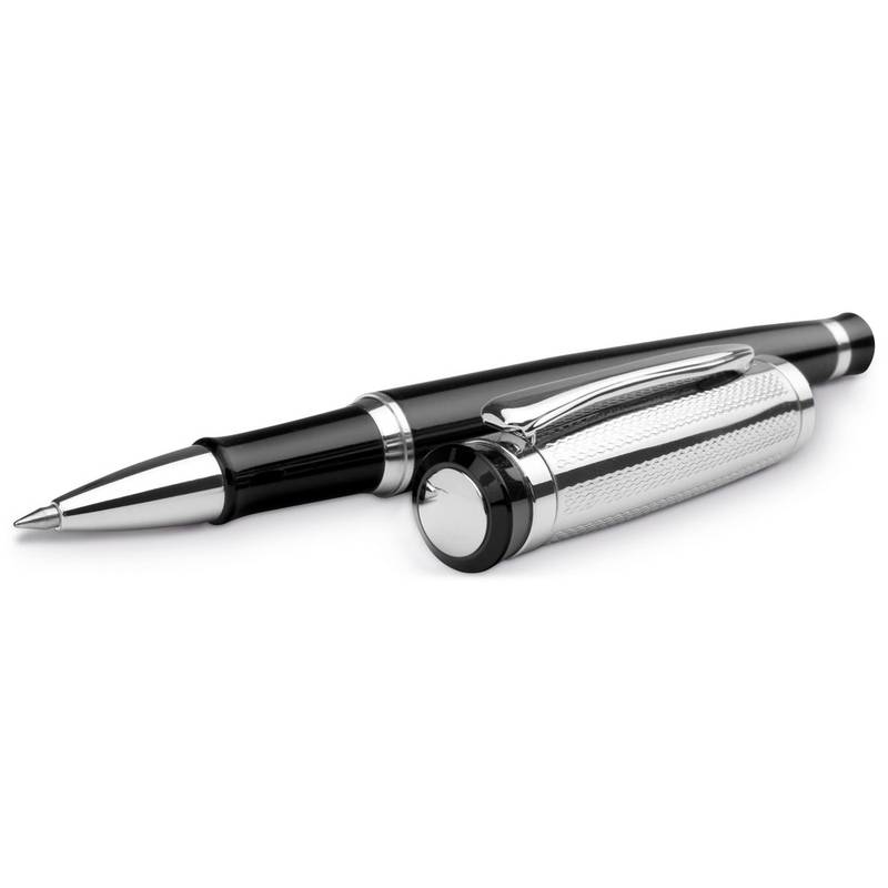 Metal ball pen and roller set supplied in gift box with magnet closure. Ball pen: ø13 x 136 mm | Roller: ø13 x 135 mm | Box 192 x 34 x 85 mm
