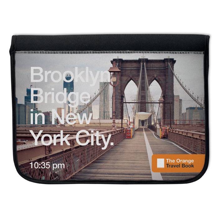 Tablet pouch made of neoprene laminated with jersey polyester. Special for sublimation.